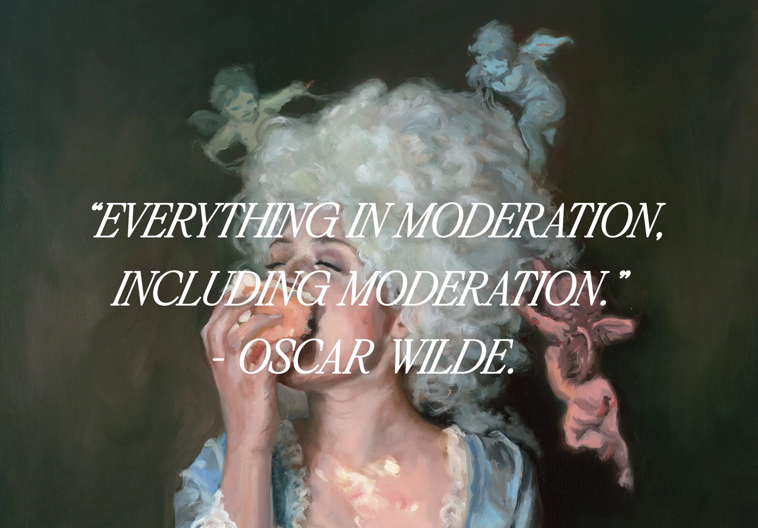 Figurative paintings celebrating indulgence, femininity, and delight.